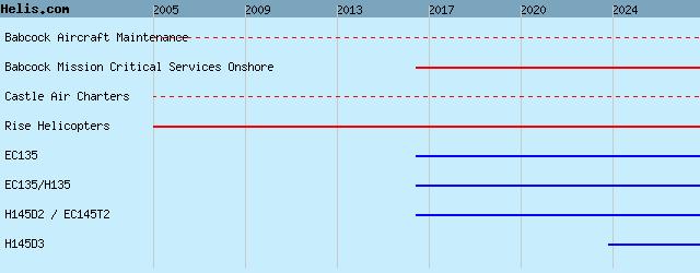 | 2016- | Babcock Mission Critical Services Onshore | H145D3 , EC135, H145D2 / EC145T2, EC135/H135, |