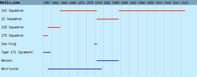| 1959/64 | 228 Squadron | Whirlwind, Whirlwind, Whirlwind, Type 171 Sycamore, |