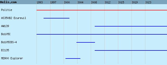 | 1993- | Politie | EC135, AW139, Bo105CBS-4, MD900 Explorer, AS350B2 Ecureuil, Bo105C, |