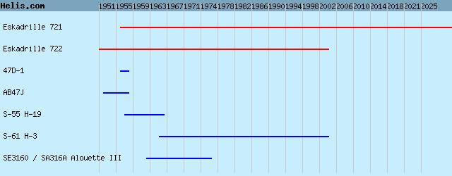 | 1951/04 | Esk.722 | S-61 H-3, SE3160 / SA316A Alouette III, S-55 H-19, 47D-1, AB47J, |