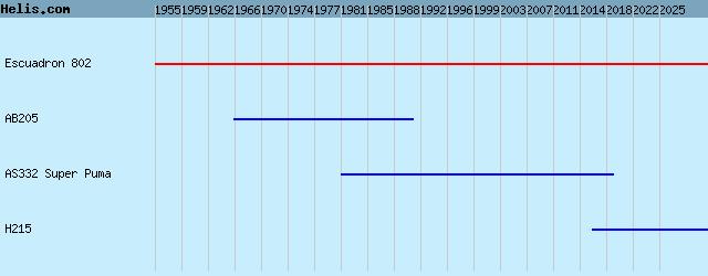 | 1955- | Escuadron 802 | H215, AS332 Super Puma, AB205, |