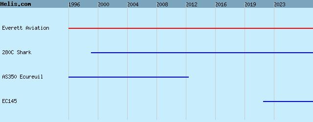| 1996- | Everett Aviation | EC145, 280C Shark, AS350 Ecureuil, |