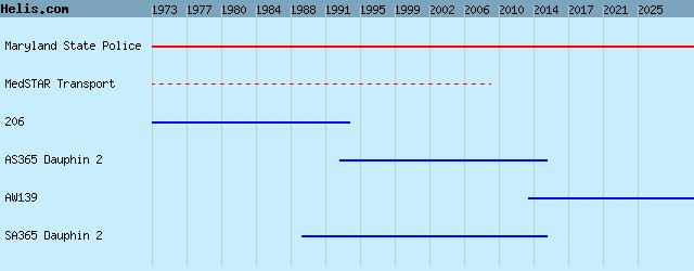 | 1973- | MSP | AW139, AS365 Dauphin 2, SA365 Dauphin 2, 206, |