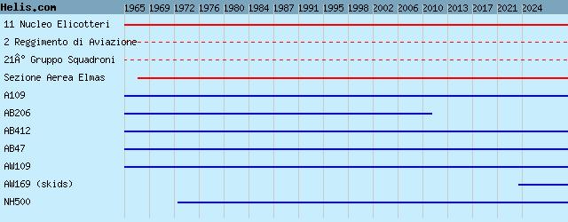 | 1967- | Sezione Aerea Elmas | AB412, A109, NH500, | | 1965- | 11 NE | AW169 (skids), AB412, AB206, A109, AW109, AB47, | | 2 Regt | AW169, AB412, AB212, AB205, | | 21 GrSqd | AB412, AB205, |