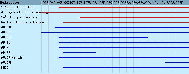| 1967- | Nucleo Elicotteri Bolzano | AW169M, AB412, AB47J, NH500, NH500, |