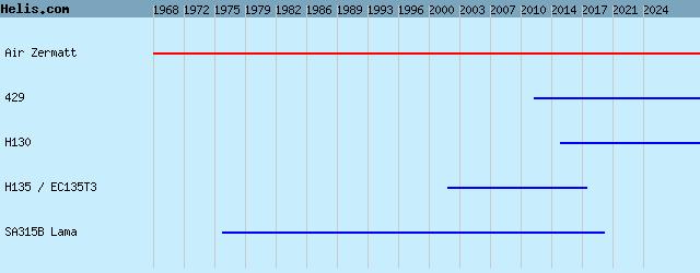 | 1968- | Air Zermatt | H135 / EC135T3, H130, 429, H135 / EC135T3, SA315B Lama, |