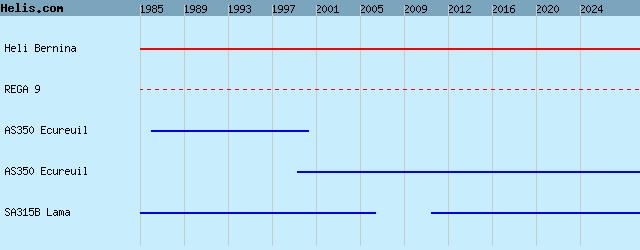 | 1985- | Heli Bernina | SA315B Lama, AS350 Ecureuil, AS350 Ecureuil , SA315B Lama, |
