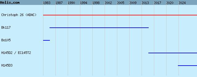 | 1983- | Christoph 26 (ADAC) | H145D3 , H145D2 / EC145T2, Bk117, Bo105, |