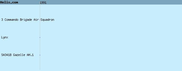 | 1991 | Lynx, SA341B Gazelle AH.1, | |