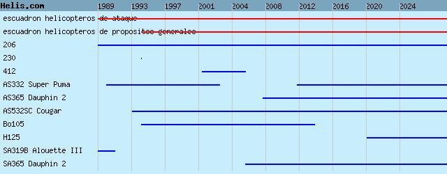 | 1989- | HA-1 | AS332 Super Puma, AS365 Dauphin 2, AS532SC Cougar, AS332 Super Puma, SA319B Alouette III, 206, |