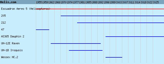 | 1955- | Escuadron Aereo 5 (Helicopteros) | Wessex HC.2, AS365 Dauphin 2, 212, UH-1B Iroquois, 205, UH-12E Raven, 47, |