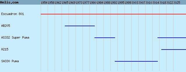 | 1954- | Escuadron 801 | H215, AS332 Super Puma, SA330 Puma, AS332 Super Puma, AB205, |