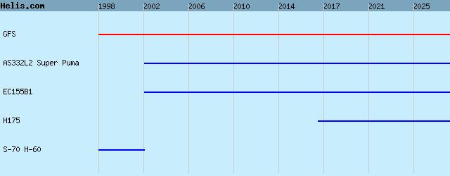 | 1998- | GFS | H175, AS332L2 Super Puma, EC155B1, S-70 H-60, |