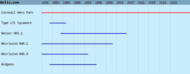 | 1976- | Flambards | Wessex HAS.1, Widgeon, Type 171 Sycamore, Whirlwind HAR.1, Whirlwind HAR.9, |