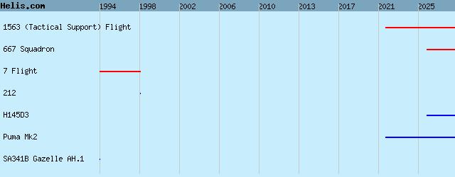 | 1994/98 | 212, SA341B Gazelle AH.1, |