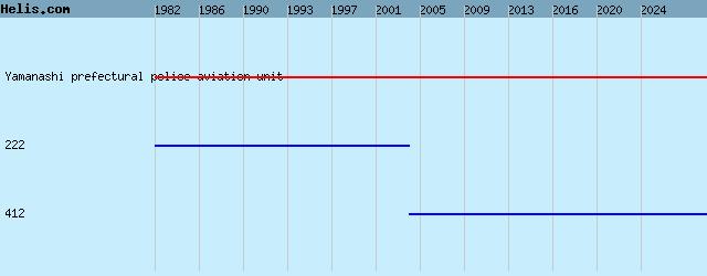 | 1982- | Yamanashi prefectural police aviation unit | 412, 222, |