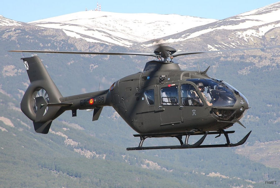 HelicoptersC/NPhotos Photos Eurocopter EC135 in Fuerzas Aeromóviles del Ejército de Tierra Eurocopter EC135T2+ HE.26-04 ET-182, CEFAMET 2008; pictured Eurocopter EC135T2+ HE.26-04 ET-182, CEFAMET 2008; pictured Eurocopter EC135T2+ HE.26-21-10017 ET-188 CEFAMET 2014; pictured Eurocopter EC135T2+ HE.26-21-10017 ET-188 CEFAMET 2014; pictured Eurocopter EC135T2+ HE.26-24-10023 ET-187 CEFAMET 2014, pictured Eurocopter EC135T2+ HE.26-24-10023 ET-187 CEFAMET 2014, pictured Eurocopter EC135T2+ HE.26-25-10024 07Jun23 pictured (pic1) arriving to Santander in training flight from Logroño Eurocopter EC135T2+ HE.26-25-10024 07Jun23 pictured (pic1) arriving to Santander in training flight from Logroño Eurocopter EC135T2+ HU.26-07 ET-195, BHELEME II 2009, Albacete test serial EC-031; pictured with UME Eurocopter EC135T2+ HU.26-07 ET-195, BHELEME II 2009, Albacete test serial EC-031; pictured with UME