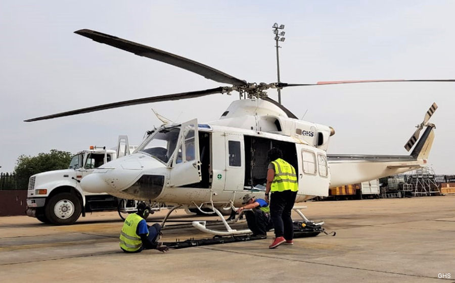 21Feb20 asg UNHAS op by GHS pictured (pic1) (pic2) in Maiduguri, Nigeria for medical evacuation out of Pulka | Bell 412SP