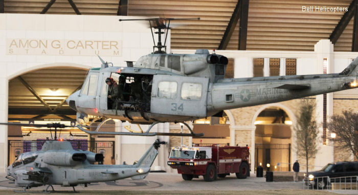 Bell UH-1N 158287USMC; 29dec12 pictured as HMLA-773 DetA /MM-34 at 2012 Bell Helicopter Armed Forces Bowl, Fort Worth-based college football. AH-1W 165322 on background | Bell UH-1N 158287USMC; 29dec12 pictured as HMLA-773 DetA /MM-34 at 2012 Bell Helicopter Armed Forces Bowl, Fort Worth-based college football. AH-1W 165322 on background |